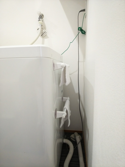 雑巾を使ったら流しで洗って、数歩先の洗濯機脇のタオル掛けに掛けて片付け完了。