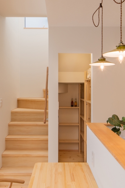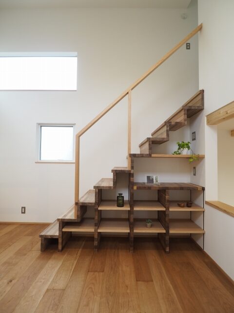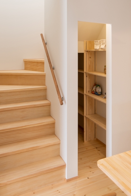 階段下のスキマを活かして便利な「小さな空間」をつくっています。