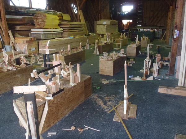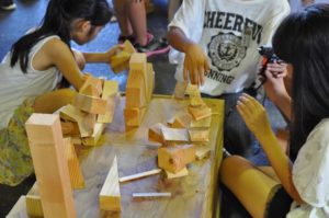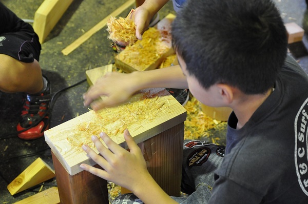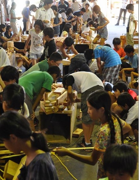 こちらは、地元小学校との共同企画「まちかど美術館」での木工製作風景です。
