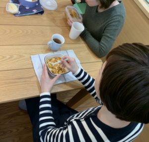 手作り弁当や、コンビニ弁当、ご近所の旭屋さんのパン、カップラーメン、納豆等、