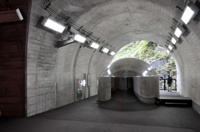 全長約750mのトンネルの先に目的地があります。