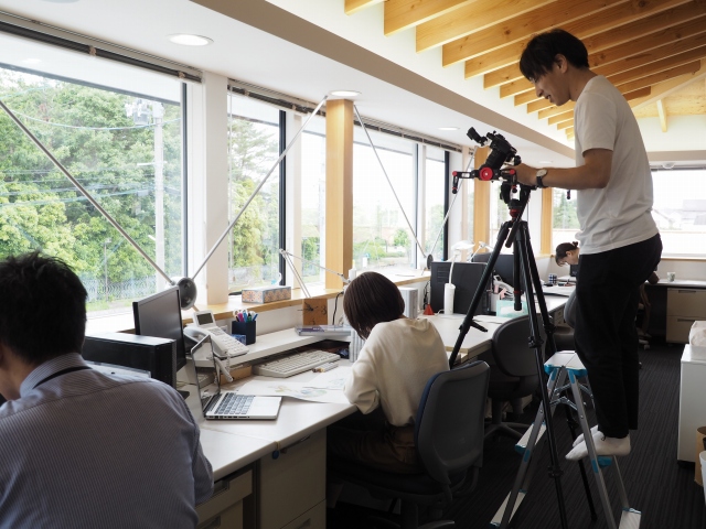夕方からはリフォーム研究所に場所を変えて、女性設計士の提案にお客様が感動するというシーンの撮影でした。