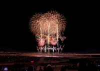 ・ そして、本番花火「千人鮮色」の鮮やかな色彩花火の連弾である。地上330m高さで爆裂して小玉が重なり合い見事な大輪を咲かせてくれた。