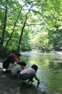 ・ 木々の間からこぼれ落ちる陽光はまさに1/fのゆらぎ・癒しの空間!鳥たちのさえずり!せせらぎの音は43年たっても決して忘れることのなく身に沁みついているのである。