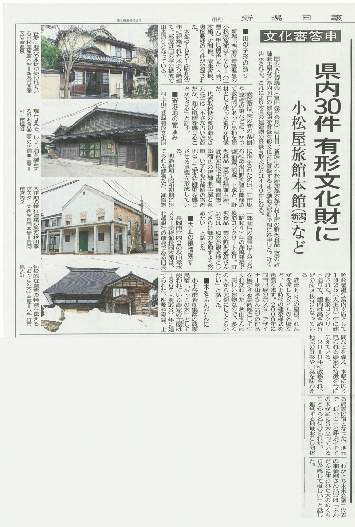 * 20160312(土):APMが登録有形文化財に登録答申が行われた。新潟日報に掲載された。