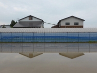 今年の雪の重さが570kg/㎥あった。(比重0.5を超える)倒壊家屋が続出した。