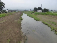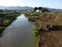 太田川は堆積土で両岸が狭まる 堆積土の掘削排出 ピッチは速く大雨の前に完成目指す