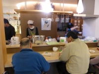 今か今かと鴨汁の完成を待つカウンター