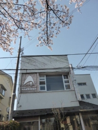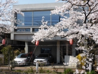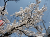 長岡本社事務所前の桜が開花し始めた。