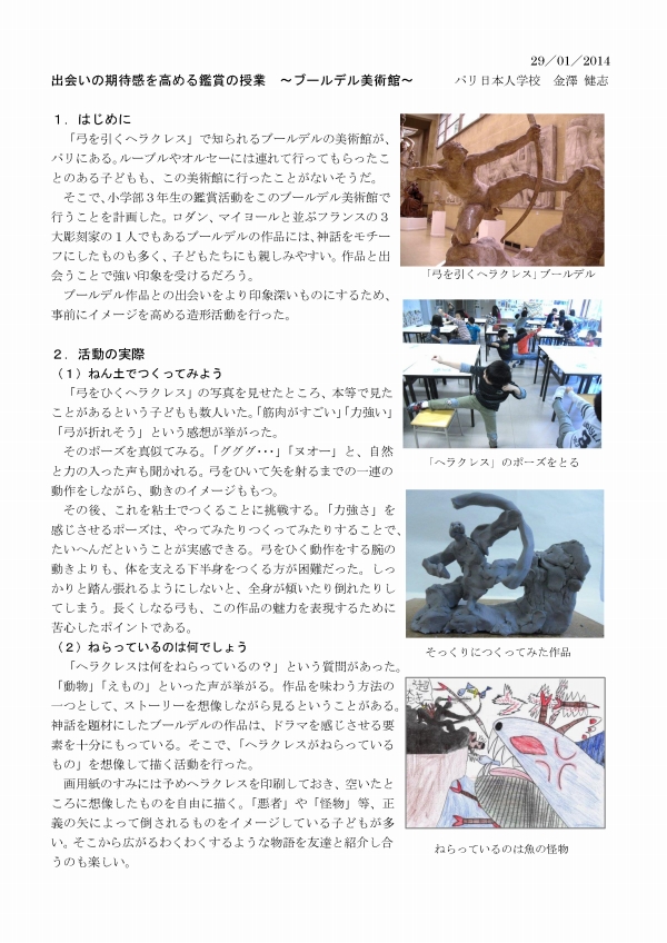 ・ そんな中でうれしいメールが届いた。パリ日本人学校で教鞭をとっておられる金澤健史先生からの近況報告メールが届いた。