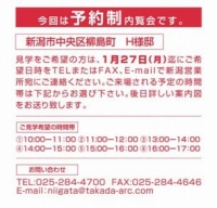 今年の第一回目の見学会開催は2月1日~3日の三日間である。場所は新潟市内である。