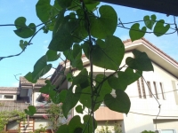 今年はとてもすくすく成長しているグリーンカーテン!新入社員の聖子さんの愛情作品!