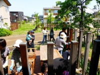 ・ 5月にリプチの森では二つのペンキ塗りが行われた。予定日は5月9日(木)と5月25日(土)であった。結果としてはとても天候に恵まれペンキ塗り日和になった。