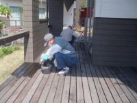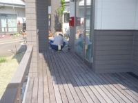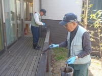 ・ ひとつはリプチの森の中の福祉介護施設であるサポートセンター摂田屋である。特別養護老人ホーム20床の各個室前のデッキ部分と小規模多機能スペースと地域交流スペース前のやはりデッキ部分の塗装である。プラス隣棟グループホームのデッキ塗装である。
