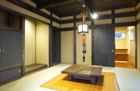 待合はアルコーブ中庭を取り組んだ快適な空間に仕上がっている。