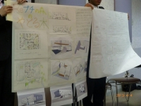 ・ 研修期間は10日間であるが、共同作業日程はその内の1.5日と言うとても短い時間内でのコンセプト作成とまとめ作業であった。ディスカッションや制作作業は深夜まで及んだ様だ。お互いに自分の持ち分と作業内容を決めて臨んだ研修作業である。