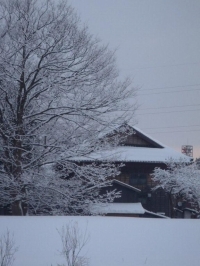 ・ 屋根の雪下ろしの時期を遅らせることになるが嵩は無いが単位荷重が多くなっていることを忘れてはならないのである。(比重が0.2から0.4以上になることもある)* そんな朝でも気温は結構低く肌身にも寒さを一層感じるのである。