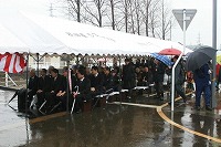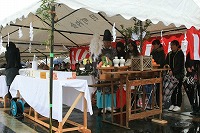完成した摂田屋橋を前に神事が始まった!