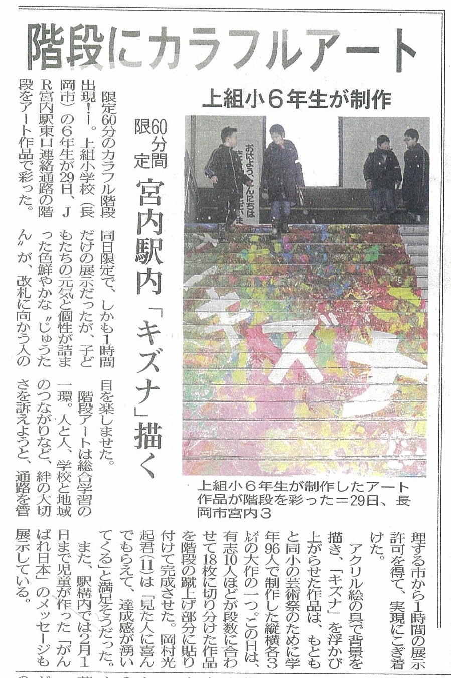 それに先立つこと宮内駅では絆プロジェクトが開催されていた。階段をキャンバスにするのは危険だと言うことで1時間限定のギャラリーであった。一瞬の華やかさだけに光度は抜群であった。