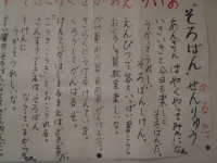 ・ お父様(おじいちゃん)は長岡造形大学で木工関係の指導教師をされていた。巣舞づくりの途上では特技の木工技術を駆使して大算盤を作っておられた。初めて見た時は正にびっくりした。今ではそろばん塾の正面看板を飾っていた。
