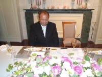 ご挨拶する段になると何度も時計を見ているのである。結果祝辞は15分位だった様でかなり縮めた内容になったが、途中、大切なことを忘れている自分に気が付いた。新郎新婦が立ったままなのである。「アッ失敬!お座り下さい。」新郎からは社長から何時座る様にと言うサインが出るか待っていました。とポツリ一言。