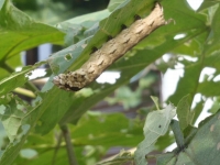 桐の葉をゆったりと食い尽くすモスラ? 成長するとこんなに大きくなるのだ?