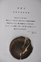 左から:頓所・高田・田村・谷畑先生・岩部・北村・鈴木である! 花火の殻を拾ってきて表彰状!