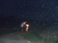 4号・5号:打ち上げ前の記念写真! 従弟花火師の打ち上げ開始である。 花火の成功を記念してひとまず乾杯!