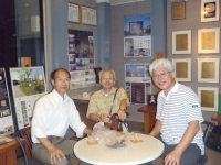 佐々木氏と当社会長は20年ぶりの再会!嬉しいね!はいポーズ! 秋山隆ポスター美術館にご案内!