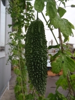 グリーンカーテンと称して植えた朝顔とゴーヤの成長はもっとめまぐるしいゴーヤの実も日一日と成長している。朝顔に交えて植えたゴーヤの収穫はこれから続く。