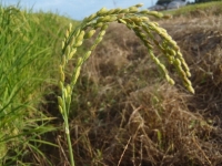 稲穂が日一日と実をつけている。そろそろ刈り時だ。毎朝の散歩ではその変化は見わけられないが、ひと月単位では大きな違いをキャッチできる。