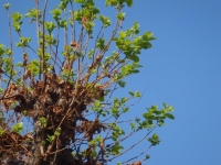 それでも食い尽くされて枯れた葉のついている枝先から新しい芽が出始めてくるのには感動ものである。更に、アメシロで一気に枯れた葉が再生するスピードの速さには目を見張るのである。
