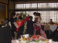 この度の結婚は新婦側からの出席である。宴席では我が社の女性社員2人と新婦の友人2人の5人席であった。美しいマドモアゼル達に囲まれての祝宴会だけに少々緊張もしたが鼻の下も長くなっていたかもしれない。(写真を見るのが怖い?)