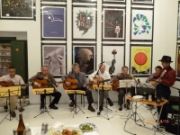その後、美術館内で懇親会が開催された:法政大学ギタークラブOBが7名+畠山先生による共演であった。アルゼンチンタンゴの“ラ・クンパルシータ”はとても名演であった。