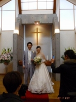 未曾有の大震災・東北関東大震災発生二週間後が予定日である。被災地情報は次から次へと伝えられ被害は記録を更新し続けている。結婚式の開催には躊躇するものがあった。巷ではほとんどと言っていいくらいイベントの中止情報が届く。特に発生から1週間以内に伝わってくる開催中止情報は誰もが頷けるのである。しかし、私達が中止決定をしなかったのは新潟県中越地震のときの経験があったからであった。