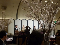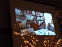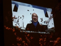 一足早く桜の花が開花した会場! 早川プロジェクトリーダーのご挨拶! 古谷誠章早大教授のビディオレター