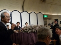 秋山孝先生による乾杯のご発声! 西村伸也新潟大学副学長からのVL 陽ちゃんの祝福ギター演奏:旅の途中