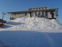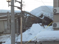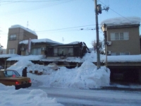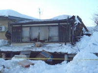 小屋梁が雪の重みで屋根ごと落ちて倒壊:みしみしと言う音がしたので雪下ろしを始めた最中に落ちたらしい。骨折者一名!