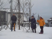 ところが、自然落雪屋根から落下した雪が軒まで届きそうである。そして、凍み渡りと重なるとれっきとした足場に一大変身である。