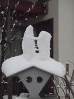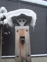 雪との闘い:この辺で、忍耐的対応ハードだけでなく、雪国には美しくもあり、楽しくもある風景がたくさん誕生していることを毎日の散歩で楽しむのである。