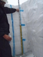 現場の屋根雪荷重を計る。積雪1.7m 比重は0.35(かなり重くなっている)