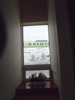 この度、巣舞いづくりのお手伝いをさせて頂いたT様のお宅は床の間の後ろ壁が硝子である。後ろがJRの線路である。時々通る電車や貨物をたたみの間から楽しむことが出来るのである。
