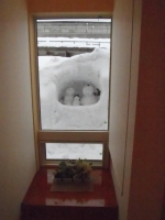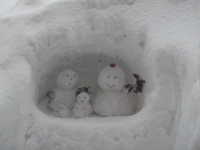 床の間の窓から電車が! かまくらを楽しむ雪だるま家族 もう直ぐ春ですよ!来年又会おうね!