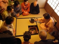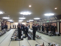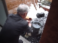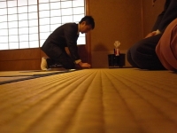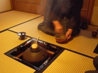 20110109(日):茶道部の滝沢社中の初釜会である。午前中は炭手前から始まって4.5畳の小間で濃茶点前を楽しむ。そして午後からは八畳の広間で薄茶点前を参加者全員で点てる。