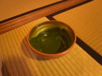 そして、私の点前茶は正客様から飲んでいただくことになった。正客様からは「タマの出来たお茶を頂くことになるかと思っていたら、点てる手の揺れがよかった。そして飲んでみると、とても美味しかったです。結構なお点前でした。」のご挨拶に「豚も木に登る」様な心境であった。