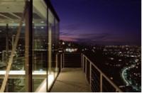 全面ガラス張り住まい。カーテン・ブラインド一切無し。全面ガラスなので周囲の景観は全て一望できる。急傾斜をはるか遠くに街の中心部を望む事が出来る。周囲は自然林に恵まれまるで一杯の緑・大きな空・自然と一体になった感覚には絶句である。外の風景を取り込むことは同時に内部の風景をオープンする事と同義語である。オフィス建築や公共建築物においては全面ガラス張りはむしろ定石。目新しいものは何も無いものであるが、住宅であるから気になるところである。(一度東京駅八重洲口にあるホテル:フォーシーズンに宿泊される事で確かめるのも良い。勿論ロケーションは全然違うが。カーテン・ブラインド無しで少々過ごす事をお勧めしたい。或いは、分厚いコンクリート壁やレンガでしっかりと管理される銀行建築を見慣れた人に金庫内部までガラス張りだとしたら・・???果たしてそんな銀行に預貯金するだろうか?に似ているかもしれない。反対に借りる側からすれば歓迎かもしれないが?)