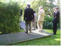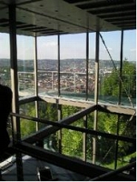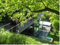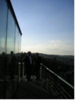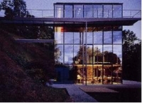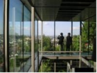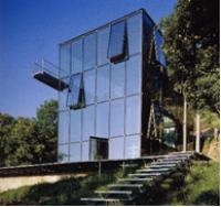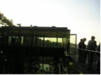 ・ 丘陵地である。周りは草木で取り囲まれている。眼下に広がるシュトゥットガルトの街の家並は確かに遠い。それでも夜になれば中はスケスケ。程よい緊張感を持ちながらの生活である。一度かなり離れたレストランから双眼鏡で覗いた話が出てきたが、見えなかったらしい。必要なところしか電気はつけない。消灯しても周りの光で内部は明るいという。夜間電気を消灯したら余計にロマンチックである。周りが透明と化し夜空が一面に広がり星や月が瞬く時こそ、全ての想いから開放されてオープンマインドに飛翔する一時でもあるのだろう。映画の中のワンシーンを連想してしまう。その時には外と内の境界がなくなる。アーティストの奥様は“まるで鳥になったようである。”“何物にも変えがたい空間である”とお話されていた。