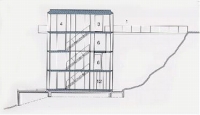 マリオボッタの作品1971年“リヴァ・サン・ヴィターレ”(スイス・ルガーノ湖畔)に非常に似ている。マリオボッタは学生時代に最も気になる建築家の一人であった。特にこのリヴァ・サン・ビィターレを避けてはボッタを語れないほどの代表作である。平面をトレースしたことを記憶している。今あらためて比較する事をしておきたいので後記参照としたい。……………眼下に広がるロケーションからアプローチの仕方・正方形のプラン・最上階にエントランスを設け、下階に4層になるつくり。更に夫々の階が吹き抜けにてつながる。その差異をリストアップことにする。