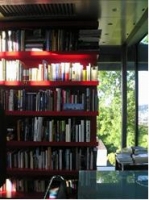 収納は必要なものだけを用意する。実はSobekさんはR-128の他にもう一ヶ所住まいをお持ちである。計二ヶ所のすまいは一方を如何にピュアーに使えるかの保証でもあるような気がする。いずれにせよ、今まで持っていた75%の布団はじめ物はボスニア人庭師さんにくれたと歯切れは良い。布団は二枚で十分。身軽になる事。キッチンにはワインクーラーがセット・ローボードには食器類が入る。夫々の必要最小限の収納は確保されていた。リビングの開架式書庫はまさにインテリアファーニチャー。それでもガレージとストレージは必要な箇所に必要なだけあった。