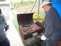 又、公民館入口前ではこちらも恒例の芋焼きが、老人会の人たちの手によって行われていた。昨年までは1本100円であったが、今年から5割り増しの150円になった。ここでも円高還元はなされなかった。といっても,サツマイモは日本製であるから当たり前といえば当たり前の話しであるが。